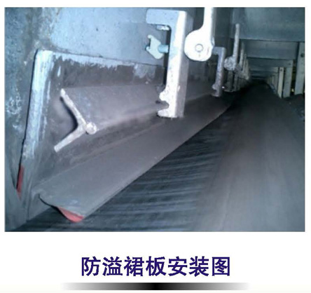 4、多护防溢橡胶裙边的安装方式特别方便,只需确认安装位置后,用夹持器夹在导料槽上即可。