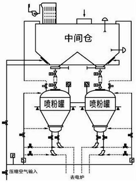 电炉喷碳及钢水脱硫设备采用PLC控制,并采用称重计量,对每次喷入量进行计量统计,因此自动化程度高。采用不易磨阀门,使用寿命长,维护工作量小。